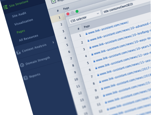 CSS selector will let you find occurrences of any selector you specify using CSS syntax (which can optionally be combined with regex using pseudo selectors). For a quick reference on how CSS selectors work in WebSite Auditor, jump to this article.