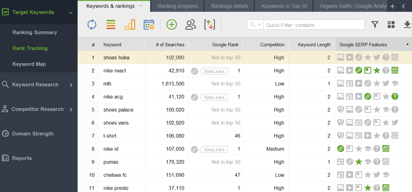 And this SERP is not an odd occurrence. We’ve used Rank Tracker to look at the presence of SERP features in a few test projects and the SERP is getting more advanced across the board. A little while ago, we used to get just a couple of features per SERP. Today, some SERPs are overwhelmed with features: