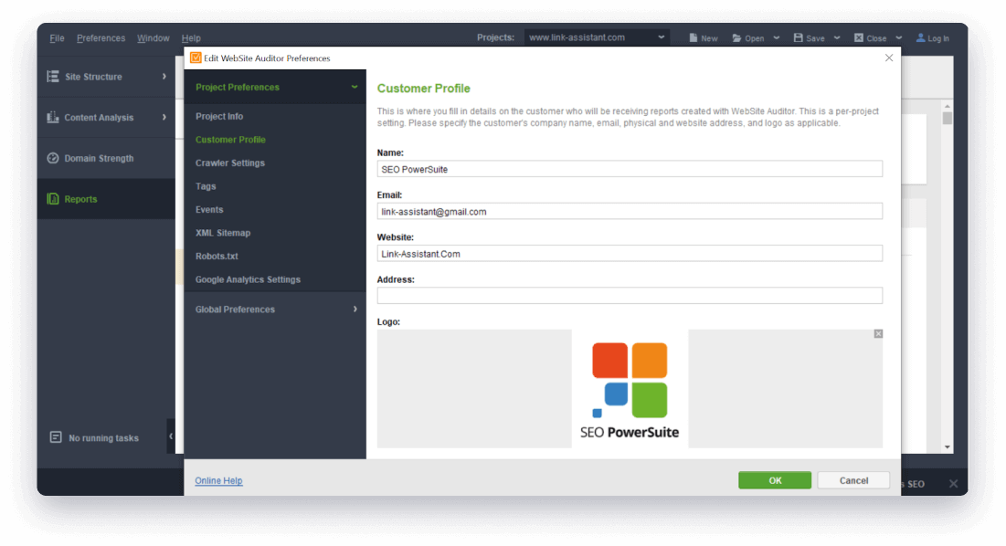 The Website Auditor's Professional edition lets you generate PDF SEO reports. The Enterprise edition adds even more value. It will be possible to save an HTML or PDF report to your computer with a Quick Save button or send it straight to your clients by email or shared URL. This is especially helpful for an SEO agency seeking to improve customer satisfaction and provide high-quality white label SEO service.