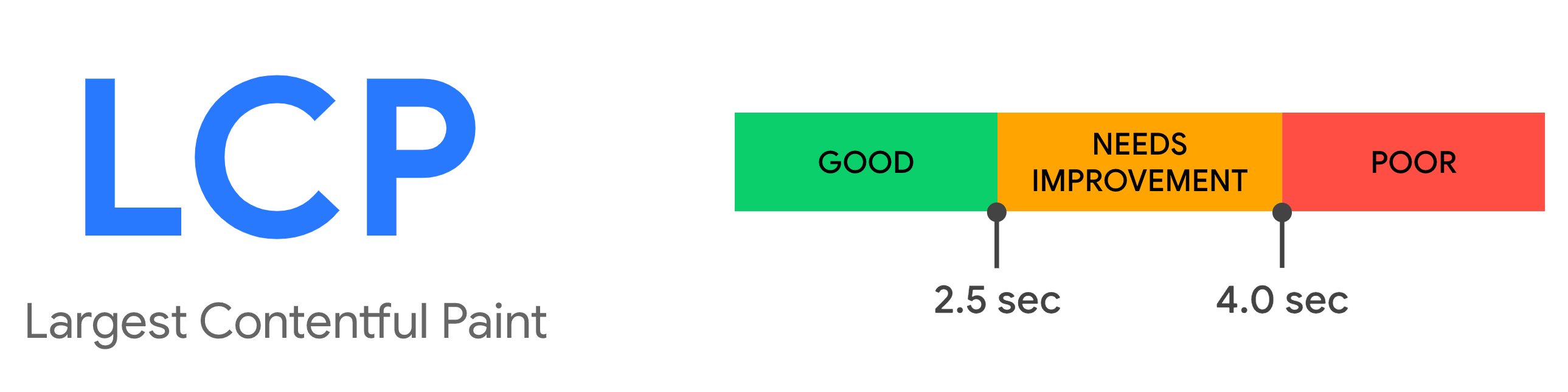 The first Core Web Vital is LCP (Largest Contentful Paint). The LCP metric is used to measure the time it takes for the largest image or text block within a default viewport to become visible from the moment a page starts loading. Current Google’s benchmark for Largest Contentful Paint stands at under 2.5 s.