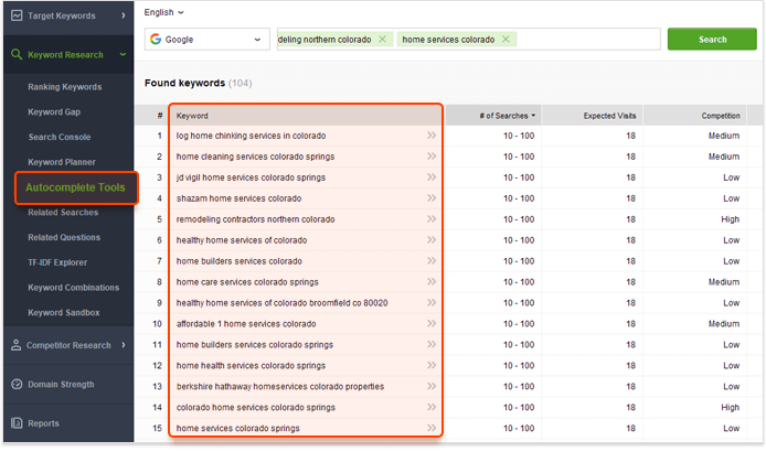 Next, I opened up Rank Tracker and used several of the keyword research software available — Autocomplete Tools, Related Searches, Related Questions, etc.