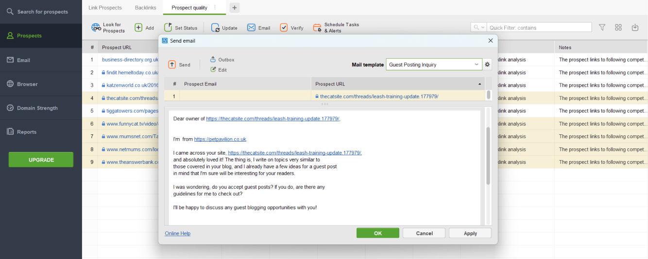 Then check the value of potential links. Switch to the Prospects section and go to the Prospect Quality tab. Examine the statistics and select the top prospects. You can remove the prospects you decide against.