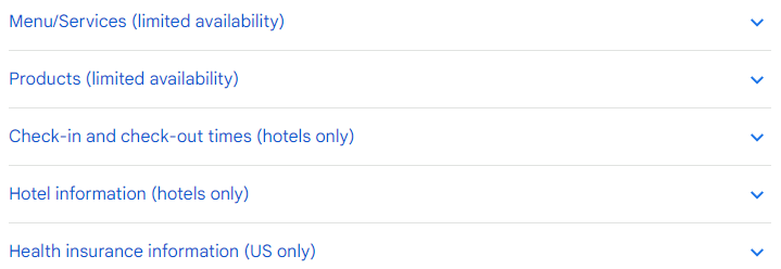 For example, cafes and restaurants can add menu items, gyms and hospitals provide types of service, hotels state amenities, supermarkets offer product catalogs, etc. All these features let you enrich your GBP profile, polish your SEO, and surpass your competitors.