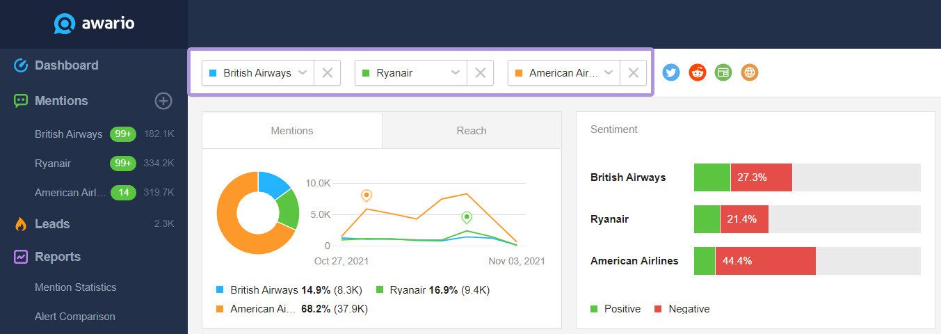 If you’re a statistics geek like I am, you may find it convenient to track your brand mentions with visual dashboards and benchmarks in Awario.
