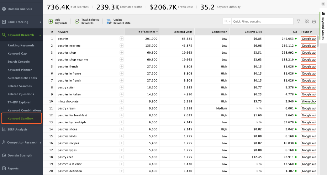 Tip: All your searched keywords are automatically saved in the Keywords Sandbox, ensuring you don’t miss a thing.