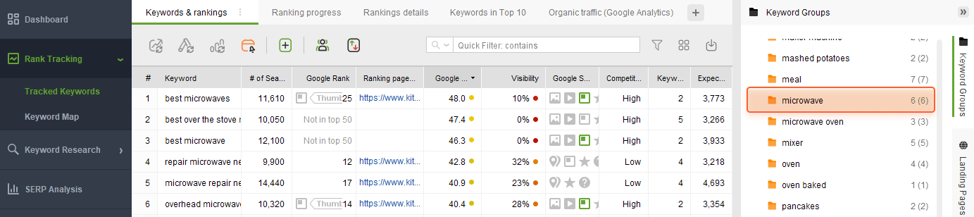 What’s more, Rank Tracker lets you further work with your keywords — split them into groups, map to landing pages, and track positions as time goes by.
