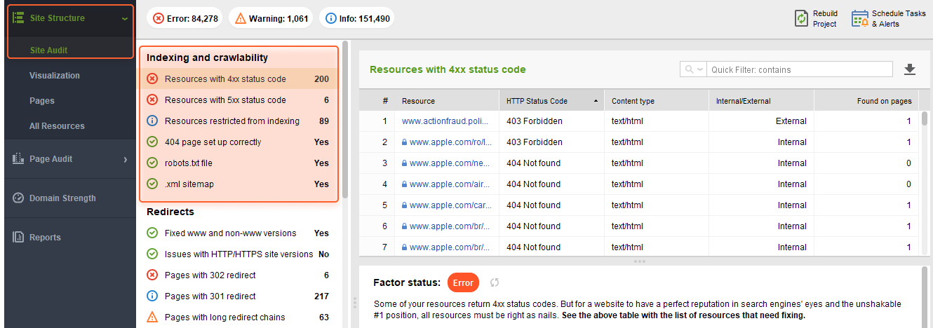 Once you need to dig deeper and get recommendations on what to fix to make a page sound, consult WebSite Auditor’s Indexing and crawlability section:
