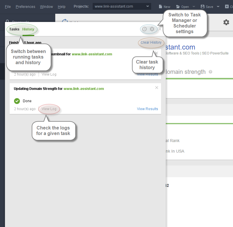 Task Manager can be accessed from the bottom left corner of the program window. The Tasks section will show the currently running or queued tasks, which can be paused, stopped, or removed from the queue.