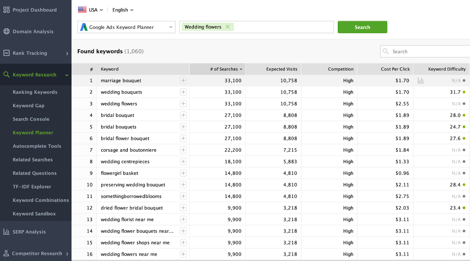 To get a general sense of keyword priority, you can still rely on national search data. For instance, if wedding flowers has higher search volume than event floral arrangements nationally, it’s likely a similar pattern exists locally. This can guide you in emphasizing certain services on your website based on demand.