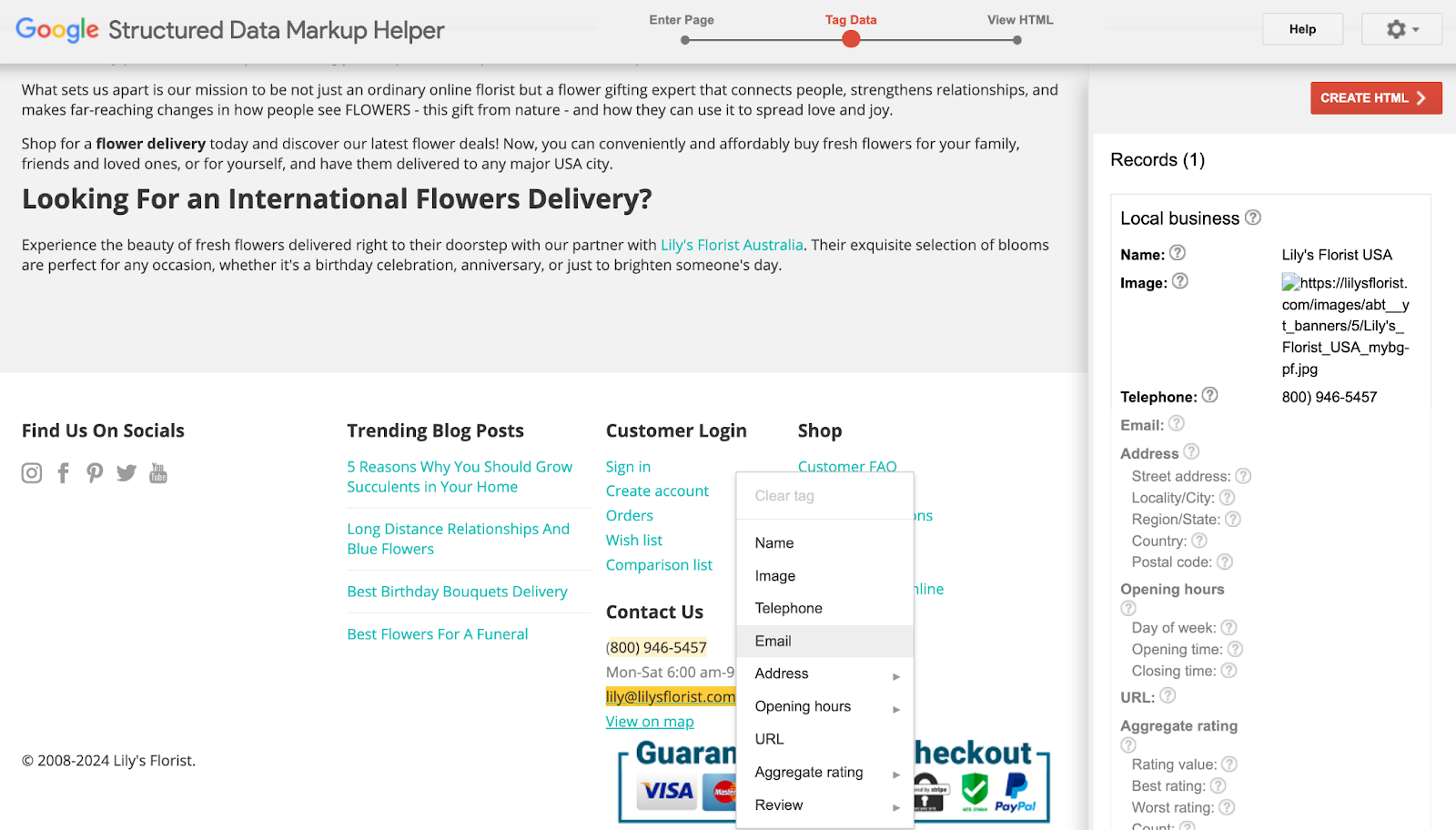 You can use Google’s Structured Data Markup Helper to add this markup easily. Simply submit your URL, highlight relevant information like your business name and address, and download the generated code to add to your website.