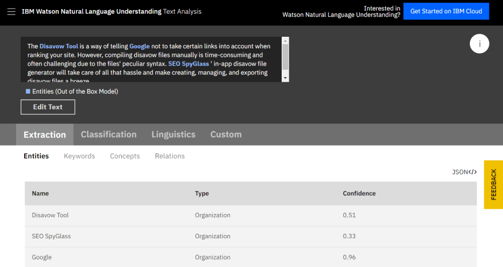 IBM Watson Natural Language Understanding includes a collection of text analytics features that extracts meaning from unstructured data. And there is the NLP API which will let you check entities to see how they are understood by search engines.
