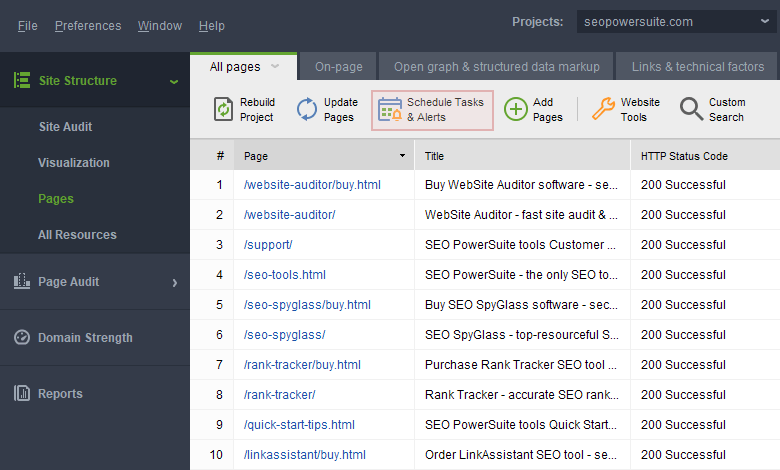 WebSite Auditor lets you update projects, publish reports and export data even when you are not at your desk. All you need to do is create tasks for jobs you would like to automate.