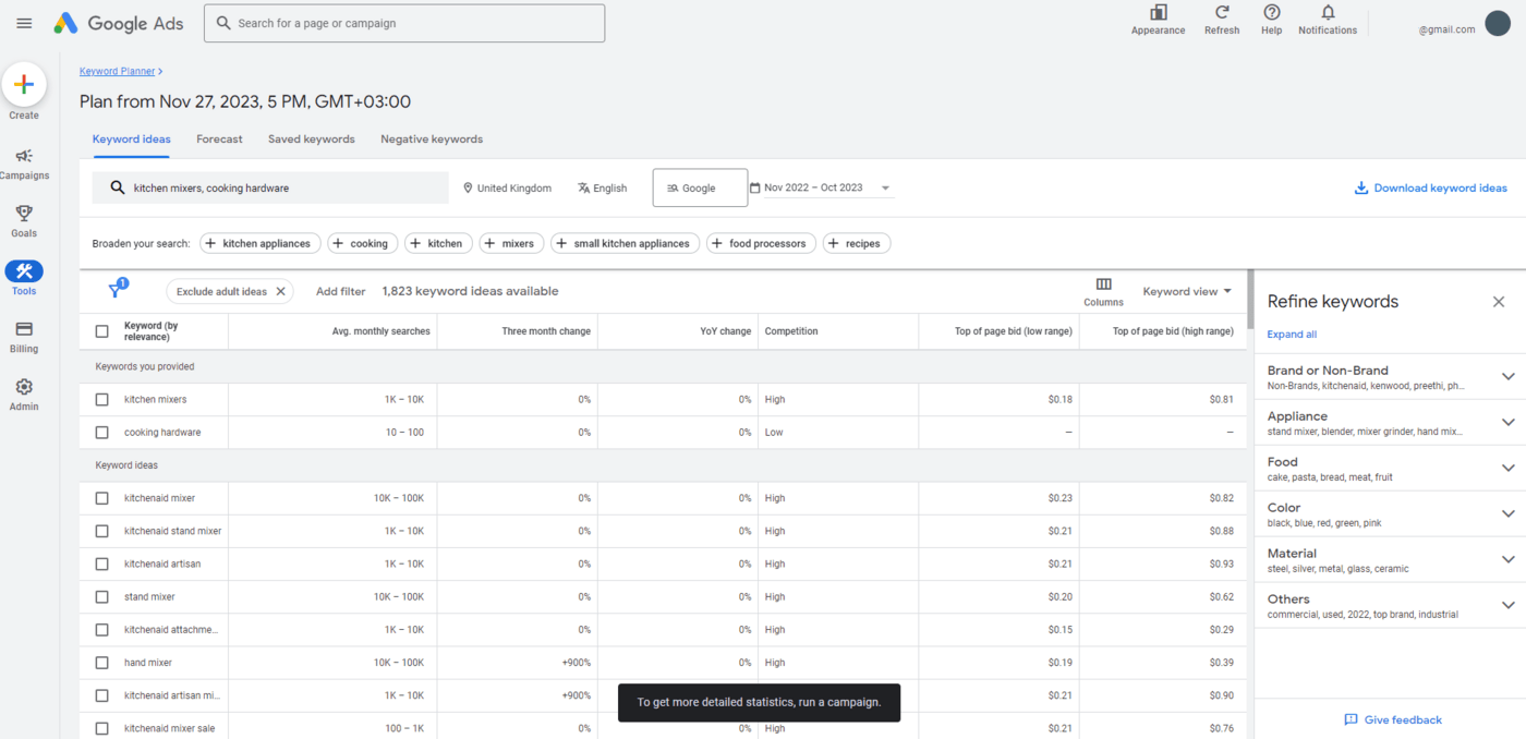 Keyword Planner helps you find the right keywords and estimate the number of people searching for them. It's great for researching keywords and generating ideas for your campaigns.
