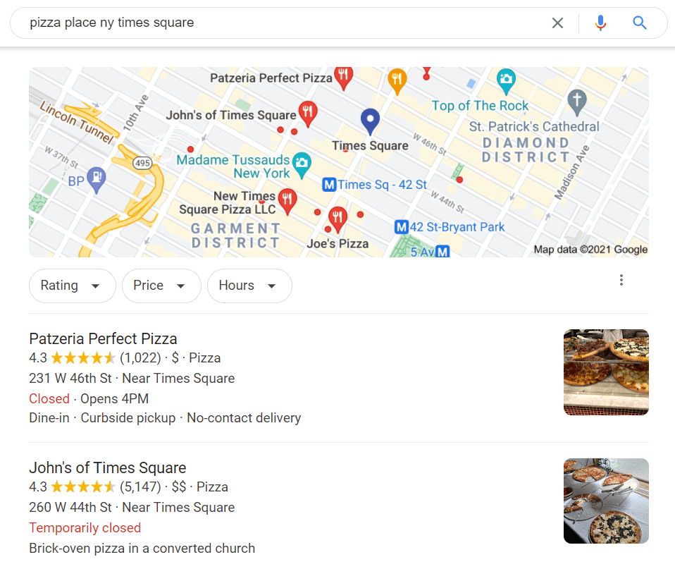 A user wants to find an offline location. In this case, search queries are usually something like McDonalds Seattle, gas station near me, Dunkin Donuts Munich.