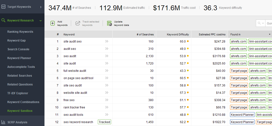 Make sure that you have done keyword research and prioritized the right keywords, as they will make the basis for your content optimization further. You can do it easily in Rank Tracker's Keyword Research module.