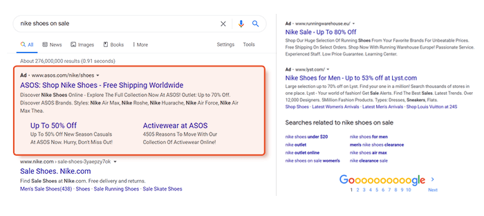 Shopping ads may appear as part of the brand knowledge panel and let users choose items without even leaving the search page. The paid results in the Shop now section will include filters, prices, best buy highlights. You can compare prices, read user and critic reviews, and only then decide whether you want to proceed to the site of the shopping platform.