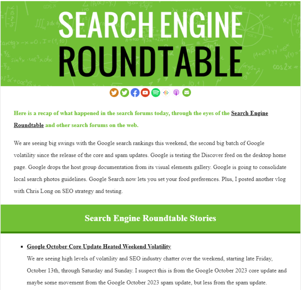 It’s Search Engine Roundtable that keeps SEO pros informed about search engine algorithms, best practices, and industry events. And its newsletter is one of the best sources of information for SEOs nowadays.