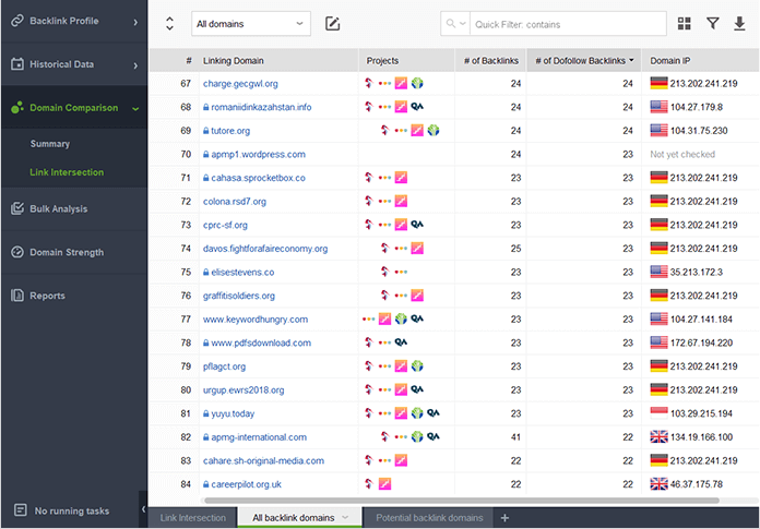 Thanks to the Link Intersection option in SEO SpyGlass I was able to check competitors’ backlinks and quickly put together a list of link prospects to target with an outreach campaign. This feature literally saved days of checking each competitor separately and manipulating the data in spreadsheets.